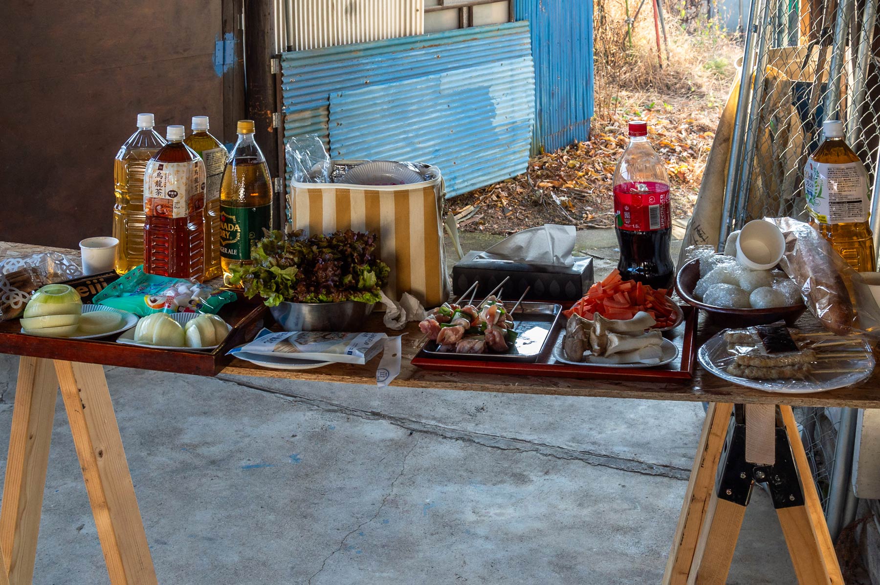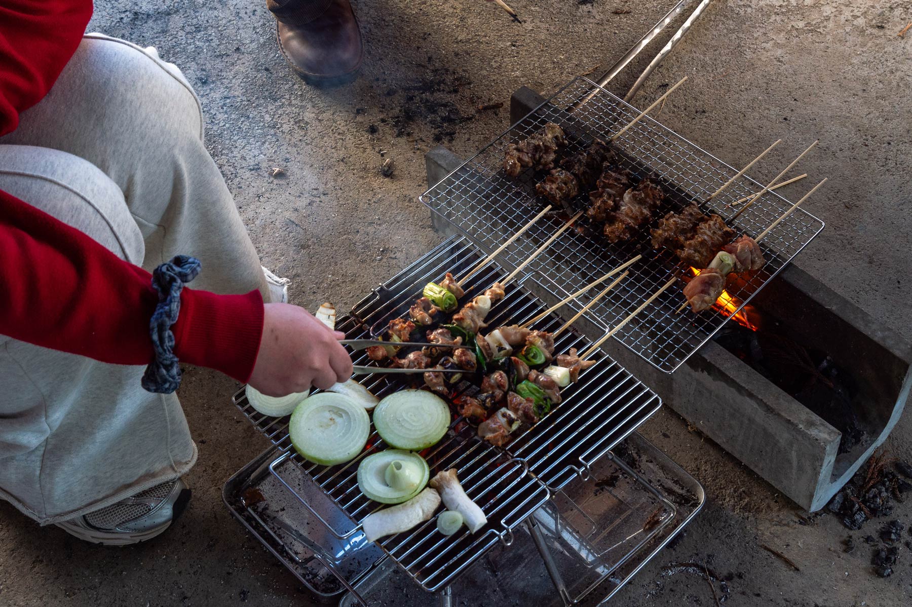 We had a Japanese-style BBQ – despite the chilly weather, grilling was still possible. Chicken skewers, a bit of vegetables, rice, and baked potatoes. From 1 p.m. to 5 p.m., we nibbled throughout the afternoon and enjoyed our free day.