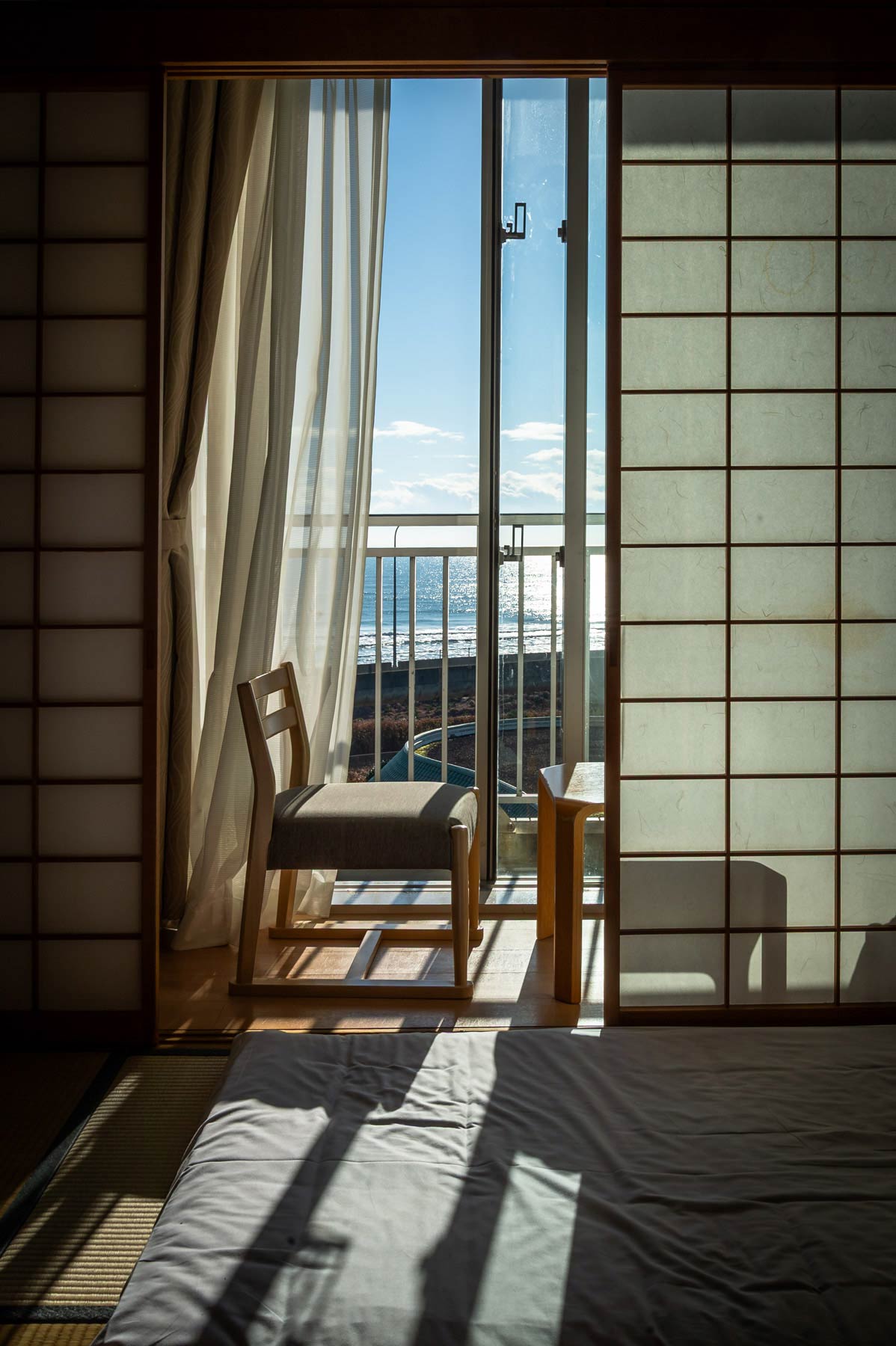 Zum Übernachten wird normalerweise ein japanisches Futon-Set vorbereitet. Während man im Restaurant essen ist, wird das Zimmer hergerichtet und das Futon ausgelegt. Das ist allerdings nicht besonders dick, und bei meiner Größe und meinem Gewicht ist das Schlafen darauf nicht unbedingt angenehm.