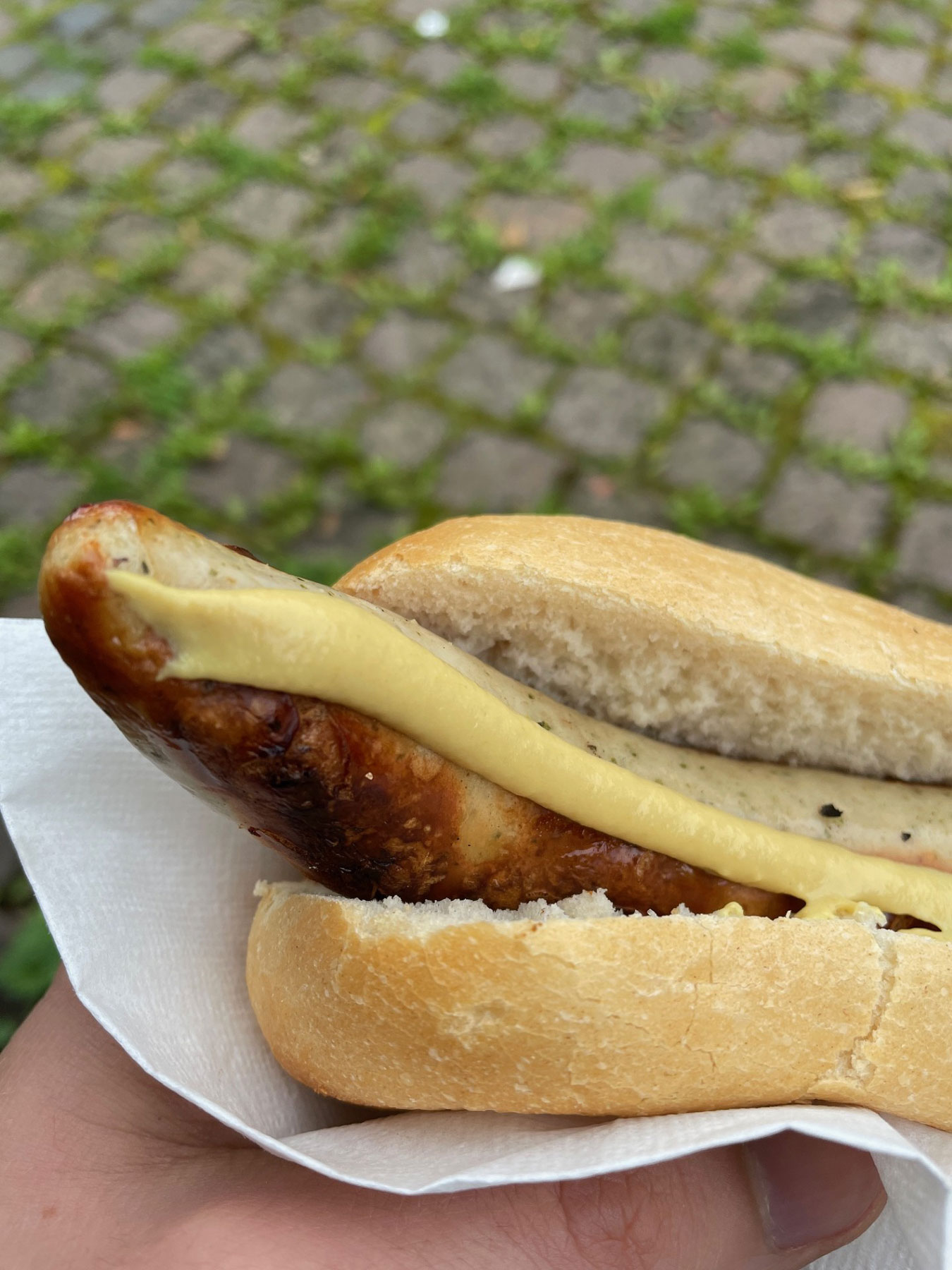 Ein Leberkaesbroetchen, lecker, hatte schon lange keins mehr.